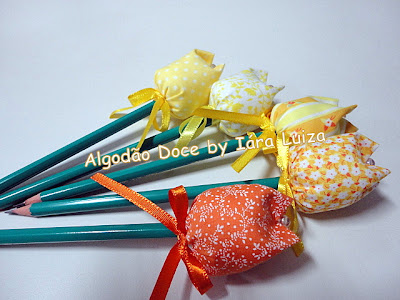 Como lembrancinhas, lápis Tulipas, bem coloridos, para acompanhar o tema escolhido para a festa.