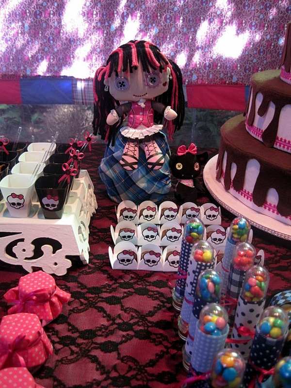 Algumas fotos de uma decoração com o tema Monster High.