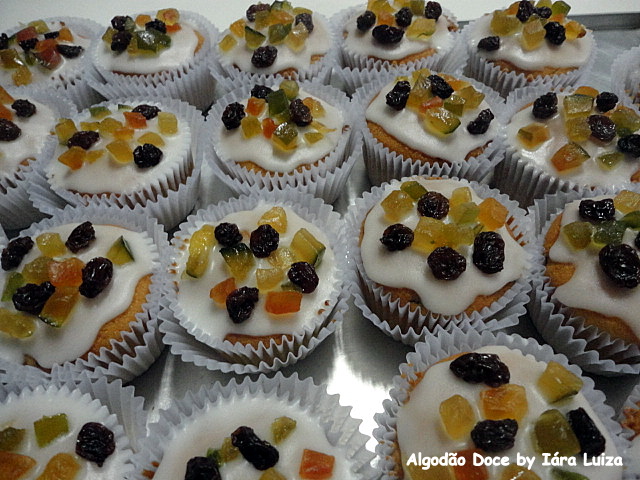 Meus pães de mel e cupcakes de frutas cristalizadas que, juntamente com as